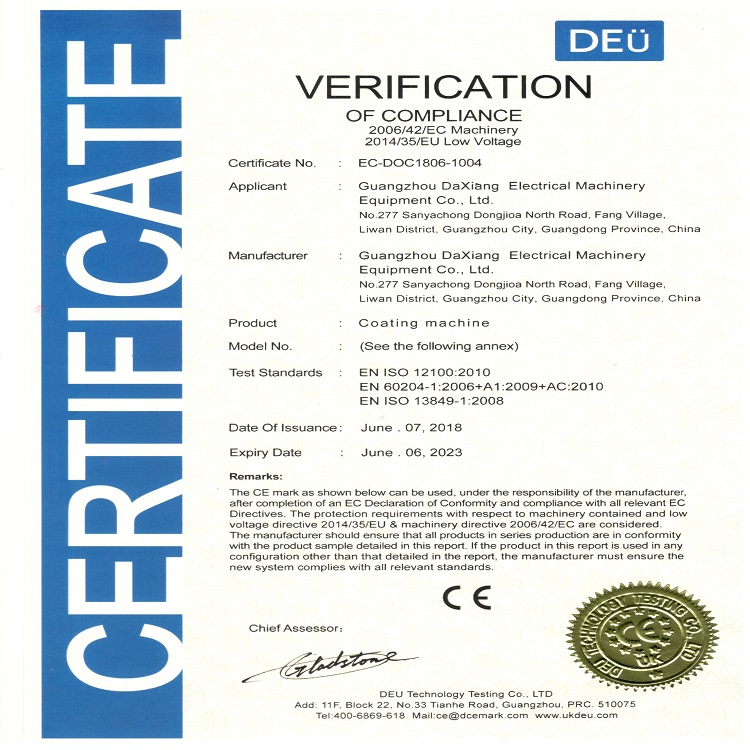 大祥机械郑重承诺:保修一年,终身维护,保修期内配件免费(人为造成客户自负费用)